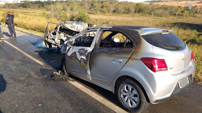 Uma equipe do Corpo de Bombeiros averiguou que 04 corpos foram carbonizados e outras 03 vítimas estavam feridas e conscientes.