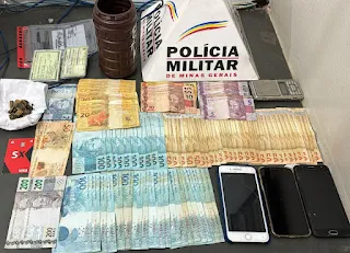 Conforme a Polícia, com as autoras foram encontrados RS 5.284,00 em dinheiro, 01 balança de precisão, 03 porções de maconha, 03 celulares, 12 bitucas de cigarro de maconha, um classe, guidao e parte elétrica de motocicleta Honda CG 150, furtada em Bom Despacho.